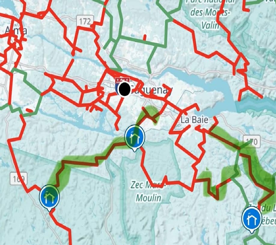 Les bénévoles travaillent sans relâche à l’ouverture des sentiers. Il y a encore des marécages qui ne sont pas gelés dû l’épaisseur de la neige. Une de nos surfaceuses s’est enlisée dans un marécage. Soyez patient! le sentier 368 de Laterriere au refuge Chartrand est ouvert. Le sentier 22 le long du Lac Brébeuf et le sentier 368 jusqu’à Ferland sont également ouverts. voir la carte ci–dessous